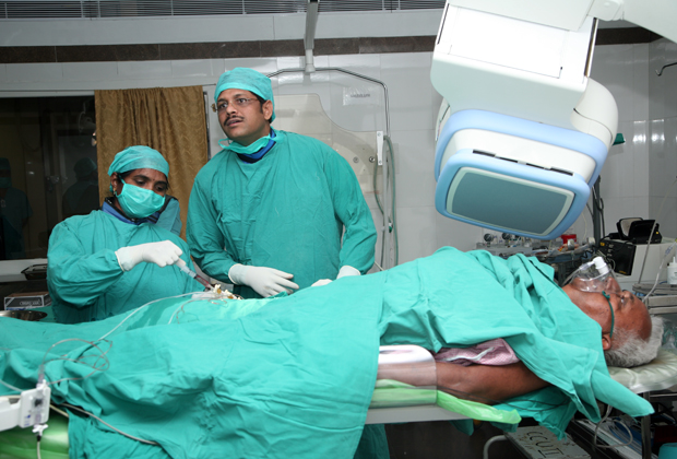 A special catheter with small balloon at the tip is used to open up the diseased artery without entailing actual surgery.